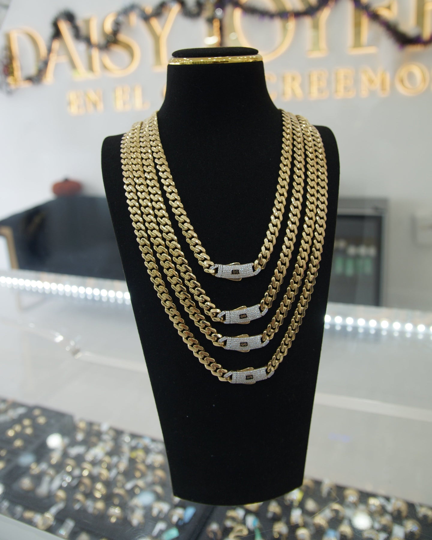 Cadena Monaco Clasica 10k con Cierre Pave que aporta un destello adicional al frente. Los eslabones compactos ofrecen brillo continuo y una sensacion de solidez. Perfecta para destacar con un acabado contemporaneo y sofisticado.