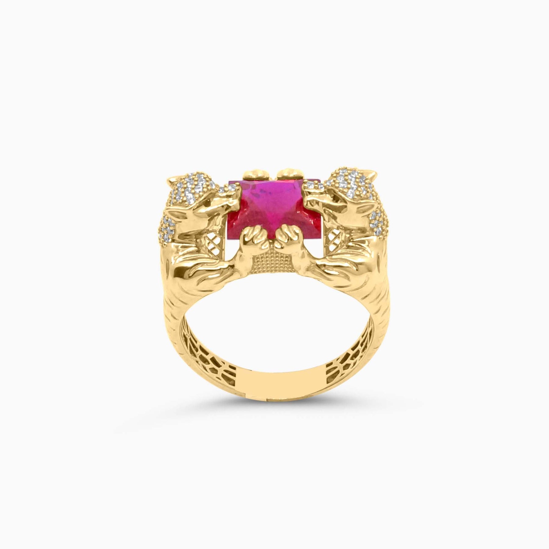 Anillo de Panteras en Oro 10K con Piedra Roja