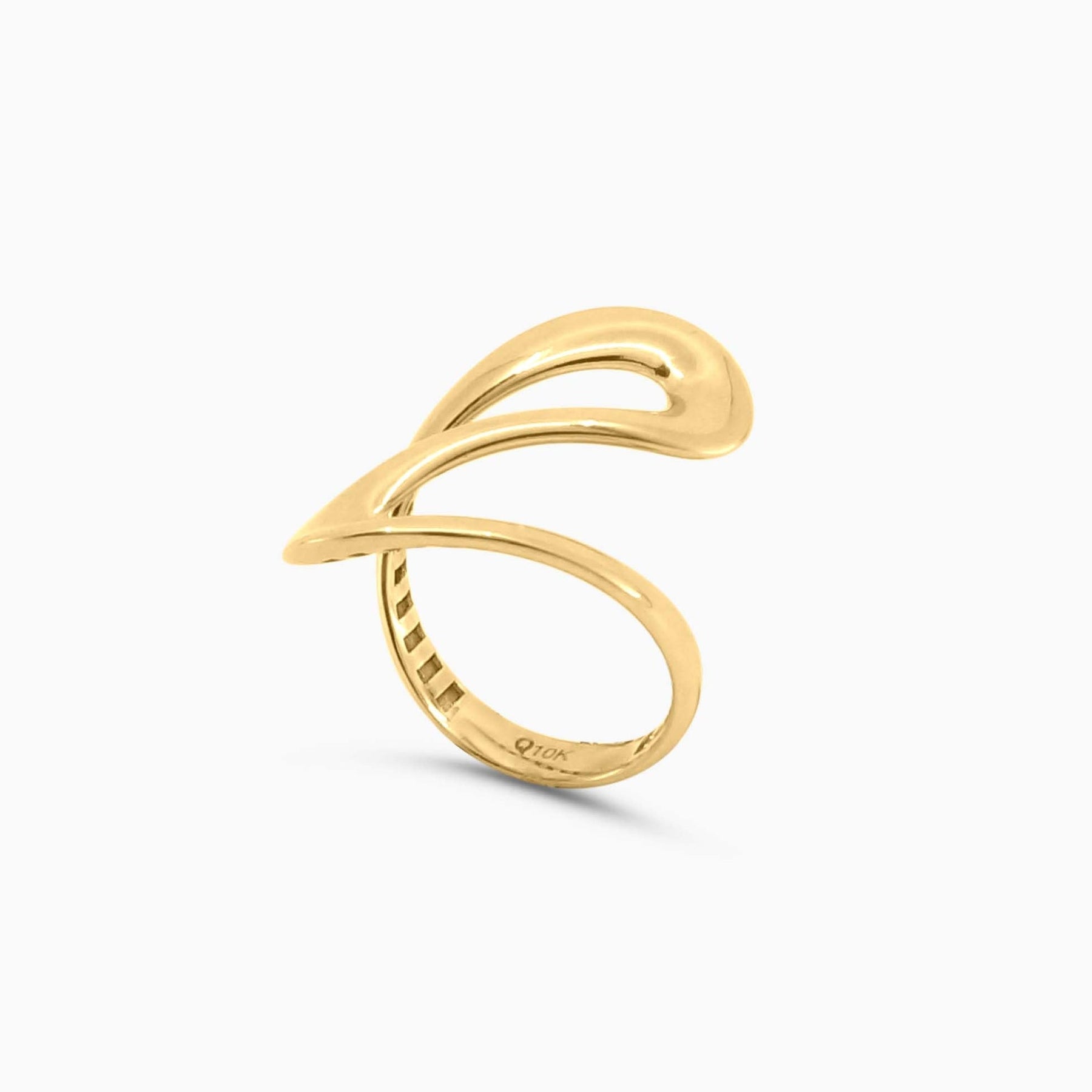 Modern and sophisticated design with an open, fluid shape that fits comfortably on the finger. Its elegant structure makes it a versatile piece of jewelry, ideal for everyday wear or to complete a contemporary look.